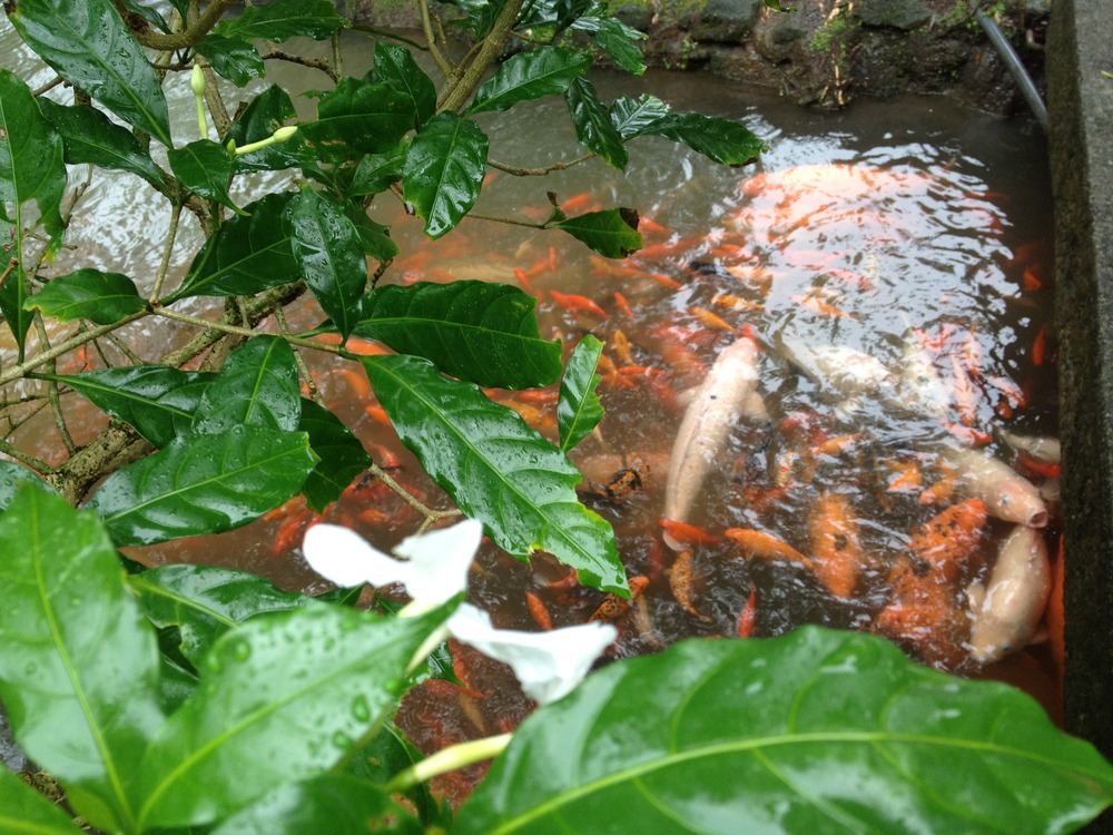 Visiting in the rain with Emma, Jill, Genie, and Amanda. Look closely on the first photo for the waterfalls.