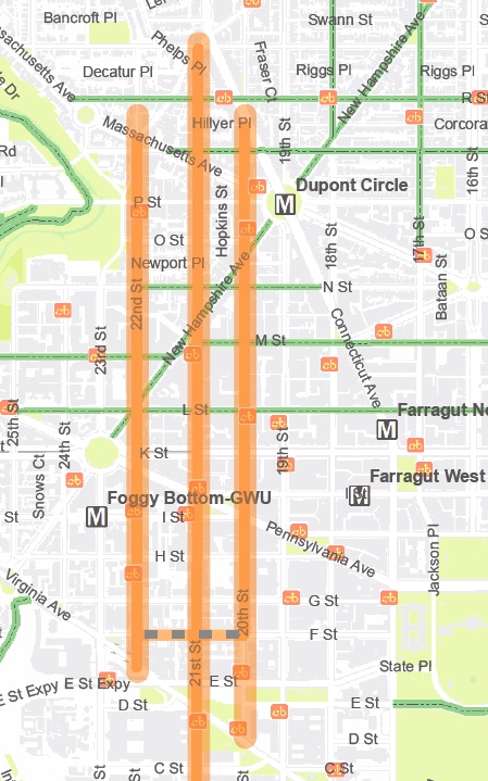 I support a north-south protected bike lane in this area. I also support making sure there are connected, protected bike lanes so neighbors in our side of East Dupont can safely bike to Foggy Bottom, the West End, and George Washington University. I heard multiple testimonies in the last couple weeks from some parents who have children at Ross Elementary, for example, who noted that Francis-Stevens is the middle school for Ross, and want a safer way to get there. This was included in the draft resolution. I have also heard a significant amount of testimony from residents in surrounding areas outside of Dupont who want safer ways to bike on their commute so they do not have to drive a car into the neighborhood.