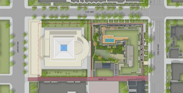 The development involves the land directly behind the Masonic Temple, and information can be found at 173316thstreet.com. The project most recently came before the Historic Preservation Review Board in November 2018. In advance of that meeting, HPRB staff issued a report and recommendations, and the ANC 2B passed a resolution with further suggestions. The HPRB “concurred with the resolution of the ANC…” and offered a list of recommendations (pages 2 and 3) for further compatibility.