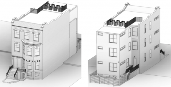 The owner of 1727 S St NW is proposing a rear addition and conversion to eight rental units. I worked with Commissioner Sampson to gather a meeting with approximately ten neighbors, the architect, builder, and owner to discuss the project. The overwhelming primary concern from neighbors was the change in density. While it is next to a 12-unit apartment complex on one side, the abutting neighbor and most of the block are rowhouses, generally not configured into multiple units, let alone eight of them. The concept abides by zoning requirements, and they are adhering to recommendations from the HPO – which does not rule on the number of units in the building. The case will be before the HPRB, so the ANC 2B plans to chime in on the project at Wednesday’s meeting. While there does not seem to be any major concerns from a strictly historic perspective, the owner has incorporated some of the requests from neighbors into his plans and has made a number of commitments regarding trash, parking, and lease terms, and other items beyond the scope of historic preservation in efforts to be a good neighbor.
