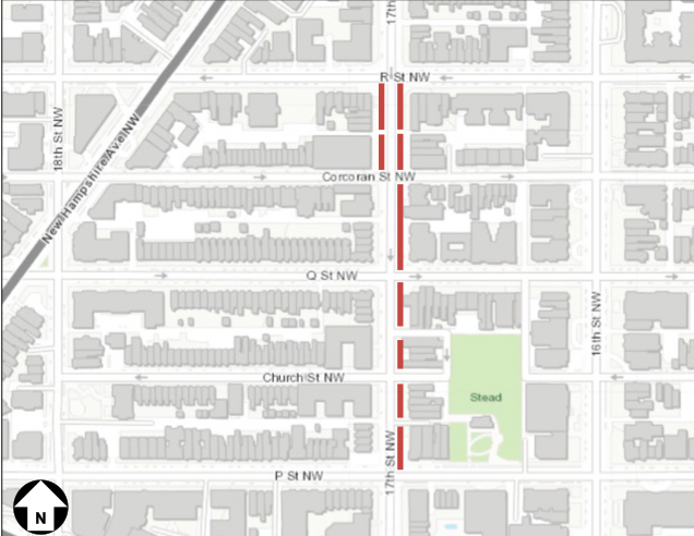 DDOT is also planning on resurfacing 17th Street been P and R Streets beginning around Wednesday, June 3, which will include disruptions, and may temporarily remove all but one travel lane at times.