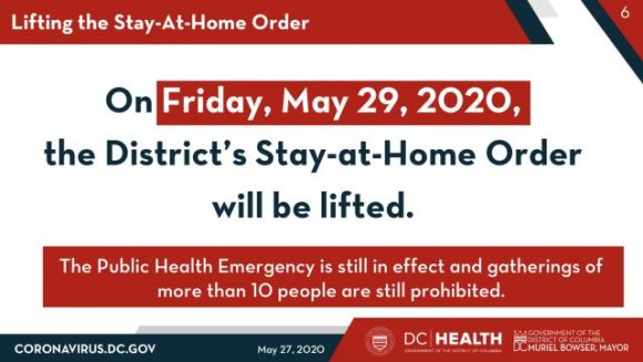 Even though the Public Health Emergency will still be in effect, Phase One begins, loosening some restrictions. This is not reverting to pre-emergency activities, but a step within the Public Health Emergency. The full text is available at coronavirus.dc.gov, and here are some key notes: